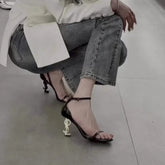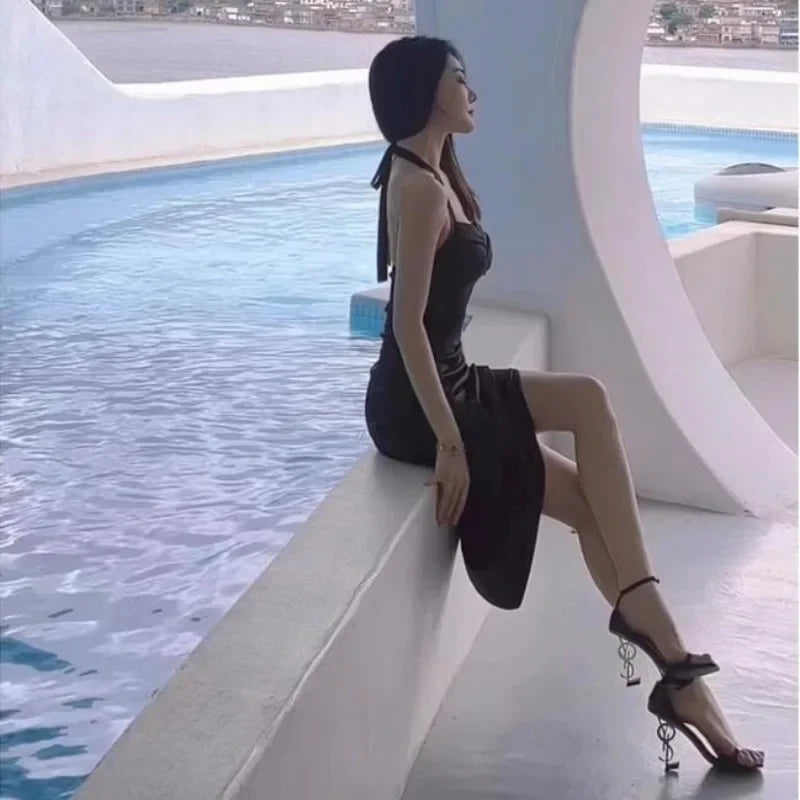 Luxury Women's Single Line Sandals Fashion Black Patent Leather Sexy Lettering High Heels Brand Designer Women's Stilettos