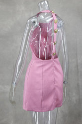 Sexy Cut Out Rose Button Halter Mini Dress Women Fashion Sleeveless Backless Party Dresses Summer Elegant Female