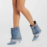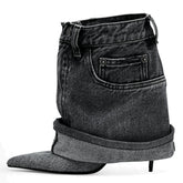 Women's Autumn/Winter Denim Fine High Heel Skirt Boots Fashion Pointed Large Women's Four Seasons Short Boots