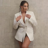 Sexy Long Sleeve Slim Fit Belt Stitching Blazers