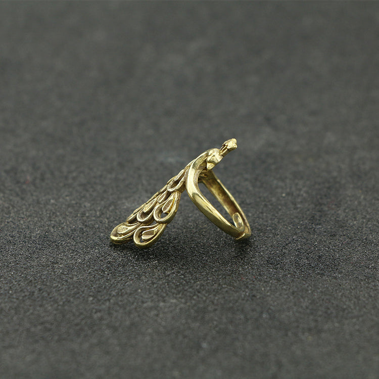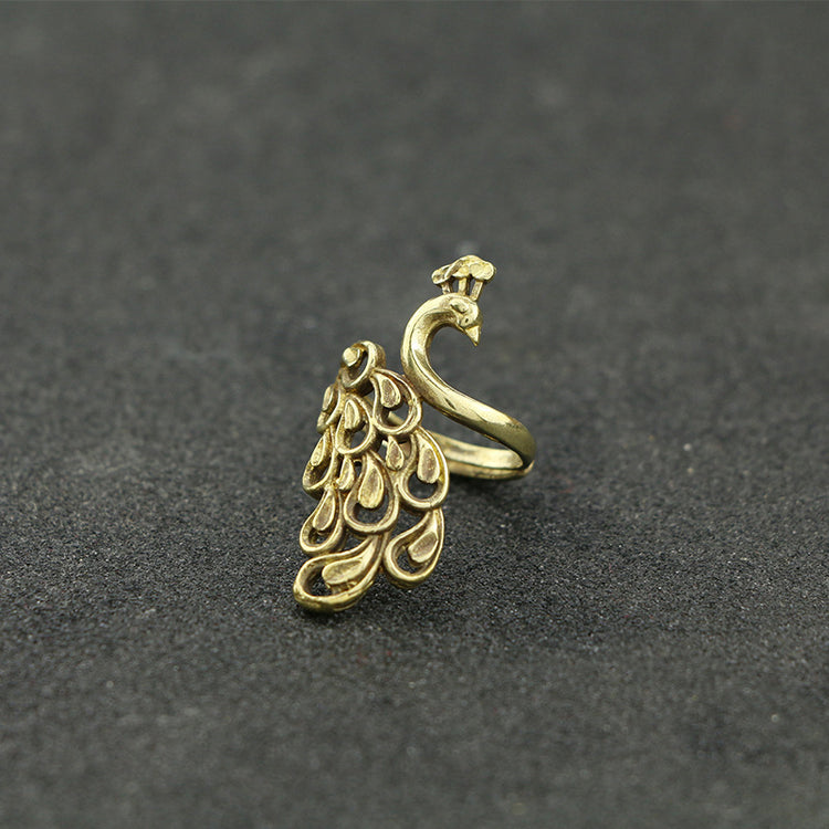 Pure Copper Ladies Ring Retro Opening Peacock Open Screen Brass Jewelry