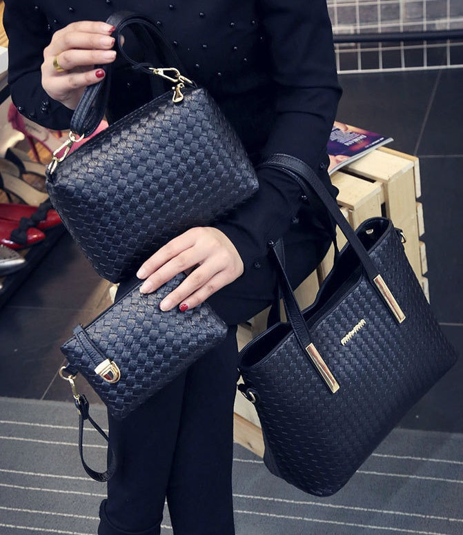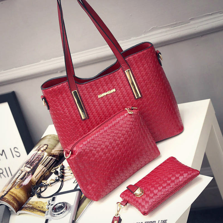 Lady bag spring European female bag leather braided composite bag three piece shoulder diagonal handbag