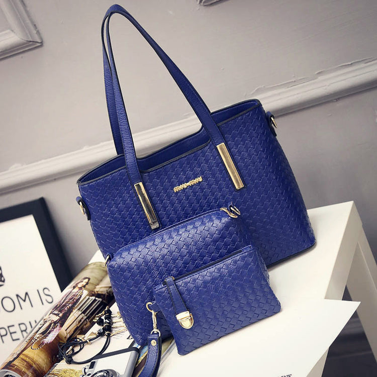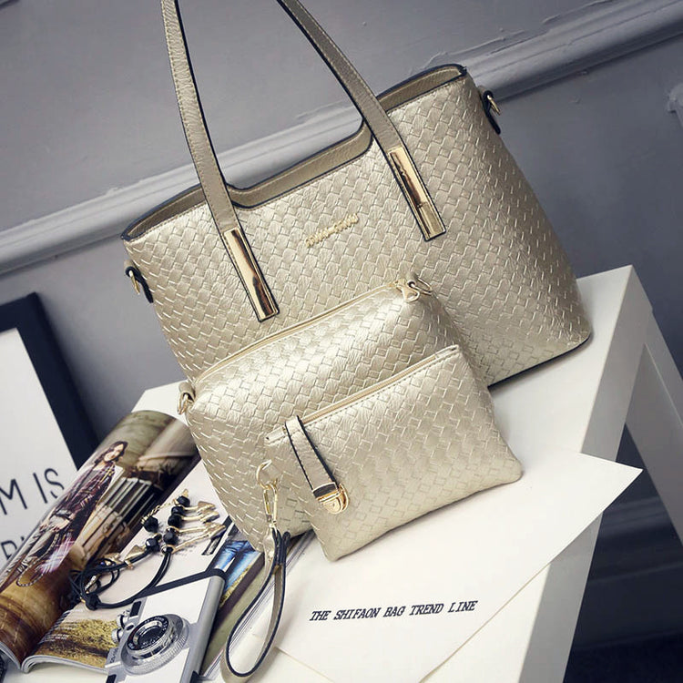 Lady bag spring European female bag leather braided composite bag three piece shoulder diagonal handbag